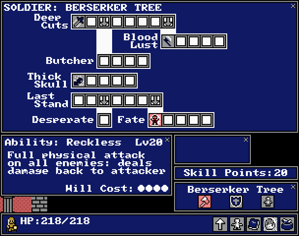 This image is a screenshot of a class's Skill Tree from NEStalgia. This image contains the menu of one of NEStalgia's classes for selecting branches in Skill Trees.